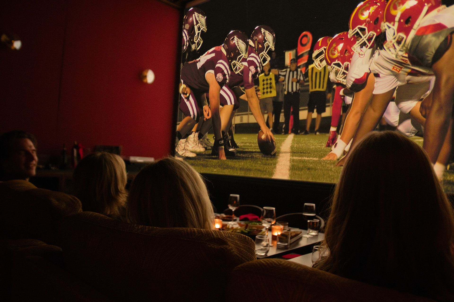 You pick the game or match and we'll do the rest. Our Sports Party package includes use of one of our private suites for 4 hours, a fantastic spread of tasty food to graze on during the game, and a full cinema screen and sound system.